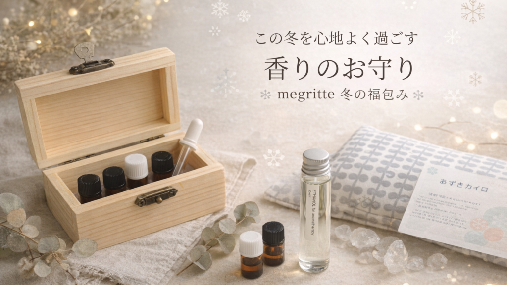 この冬を心地よく過ごすための、香りのお守りセットをご用意しました。 【megritte 冬の福包みのご紹介】 冬の寒さが本格的になる時期ですね。知らず知らずのうちに、体も心もこわばりやすくなってきます。 そんな冬を、少しでも心地よく過ごしていただけ... -