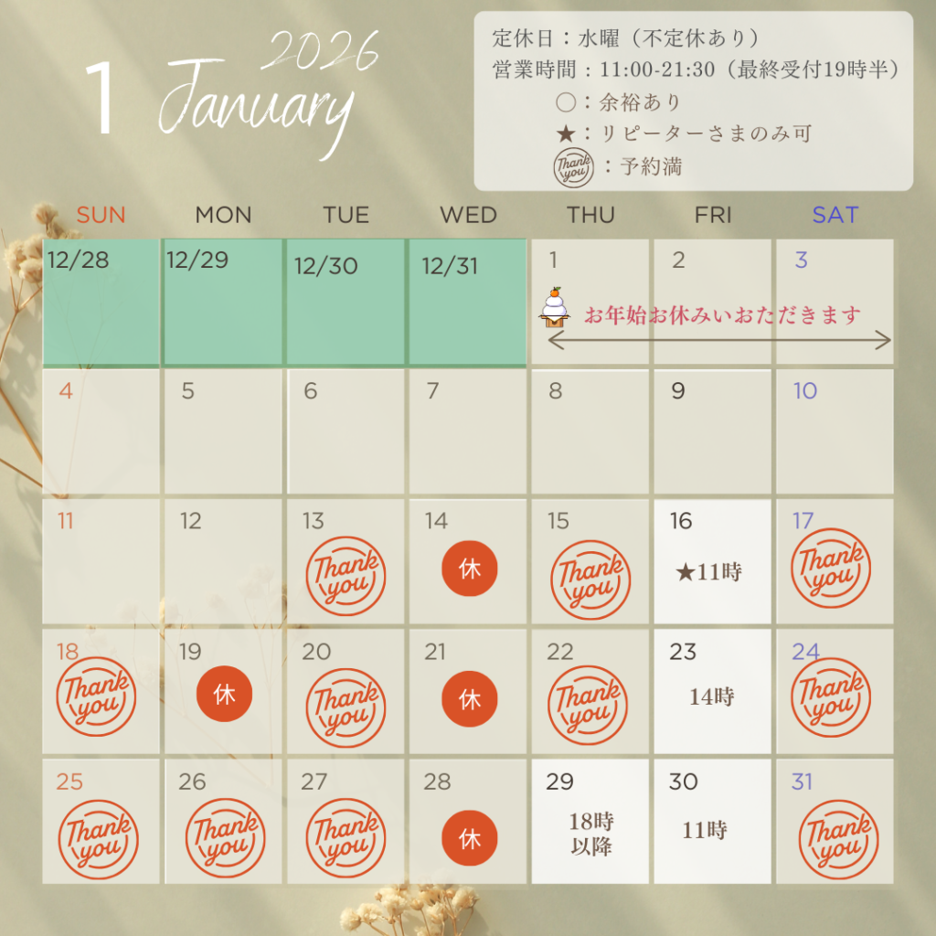 1月の空き枠残り少なくなっております🙇♀️✨